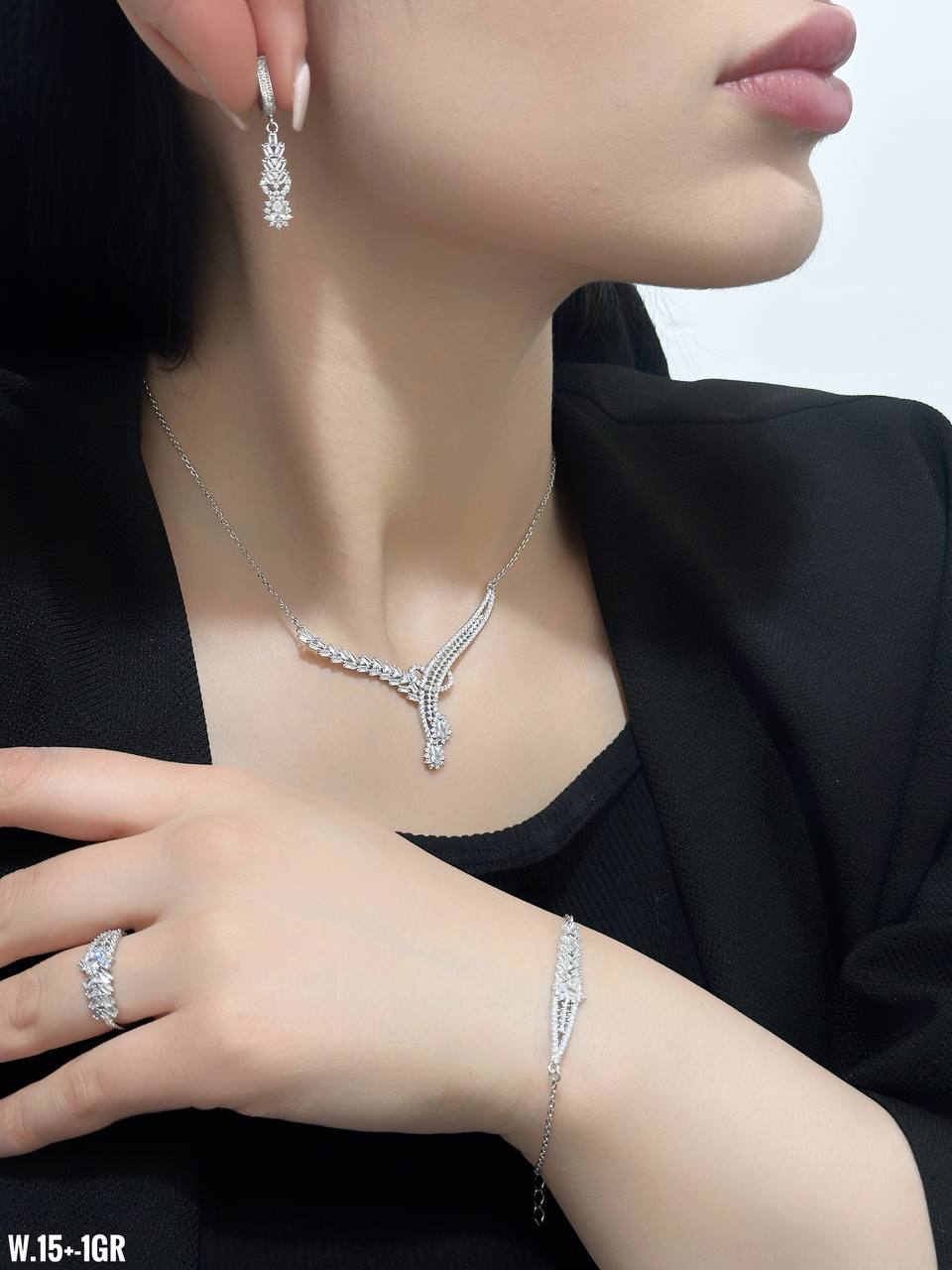 سرویس نقره طرح امرالد 2 لایه آبکاری رادیوم نگین های زیرکنیا وزن: 16 گرم