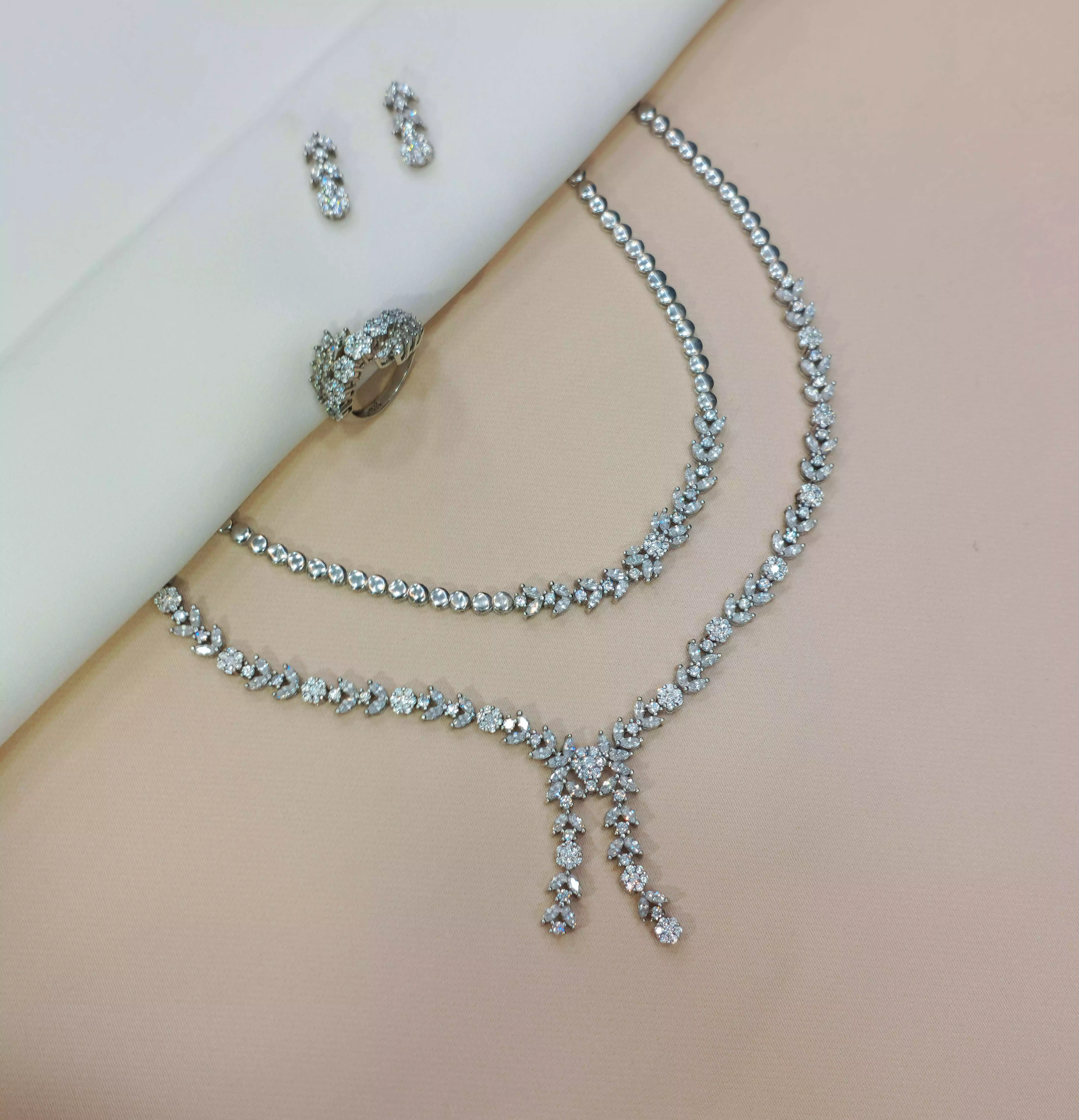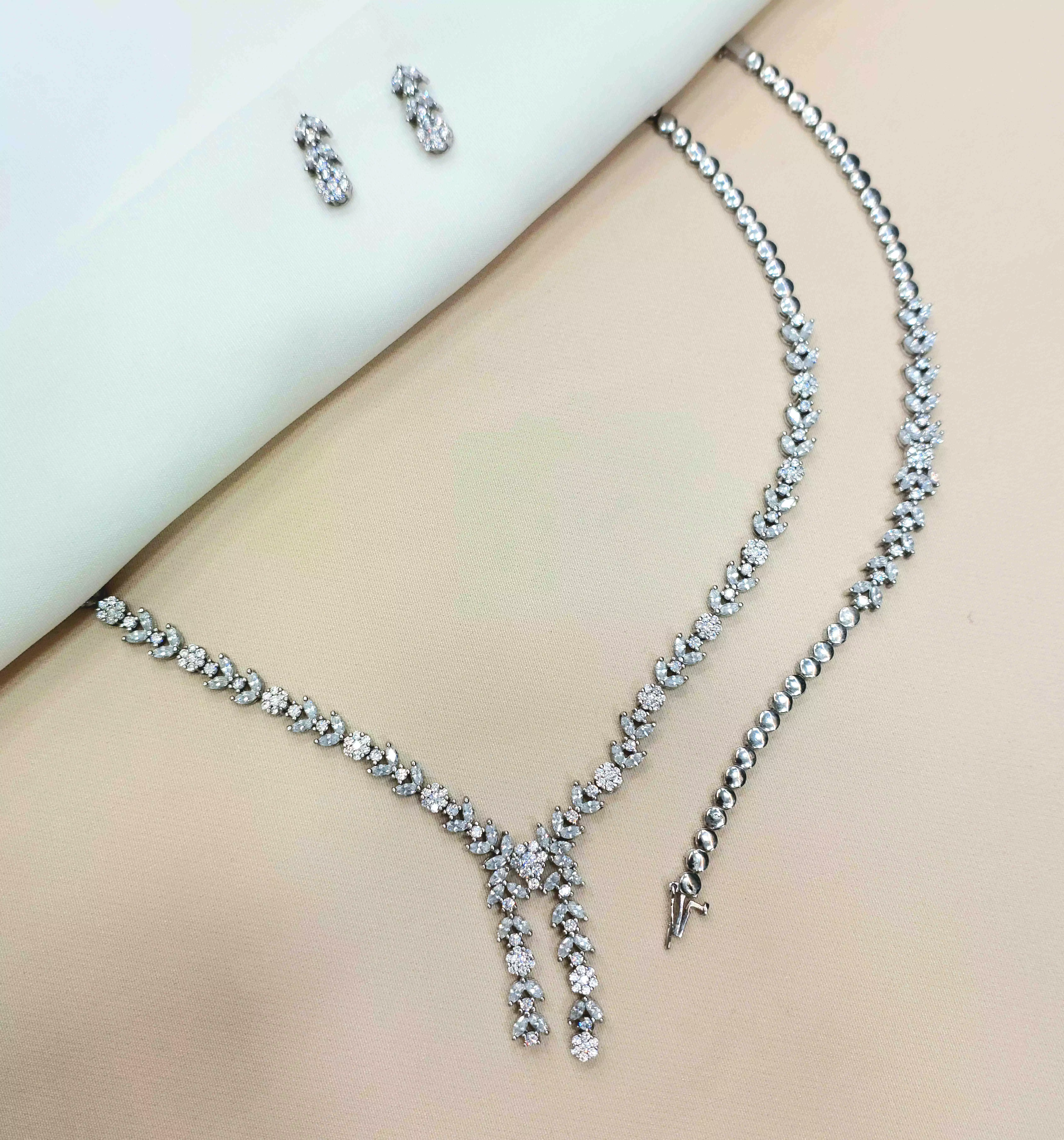 سرویس نقره طرح امرالد 2 لایه آبکاری رادیوم نگین های زیرکنیا وزن: 41 گرم